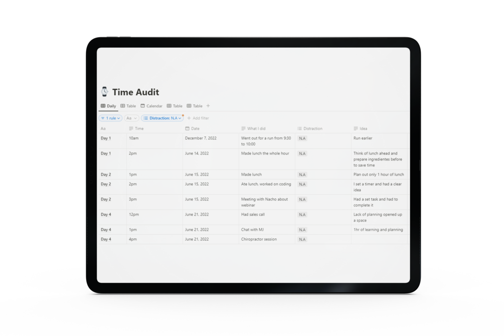 - Time audit template