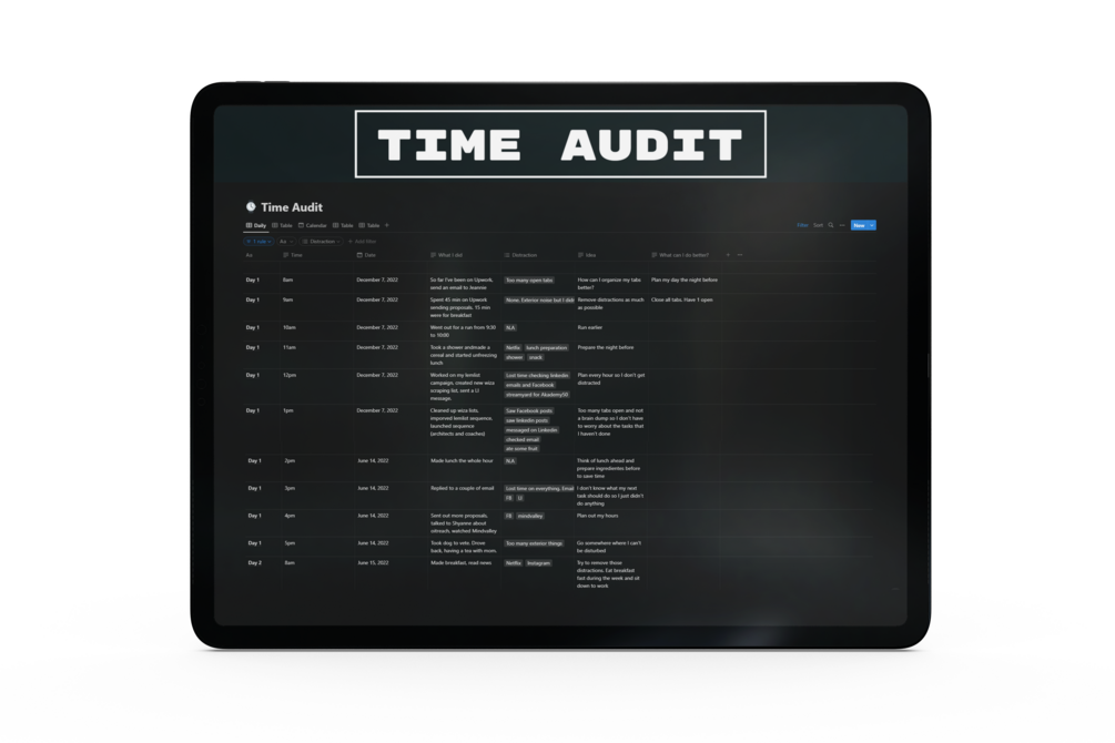 Set yourself up for success by auditing your time to be more productive.